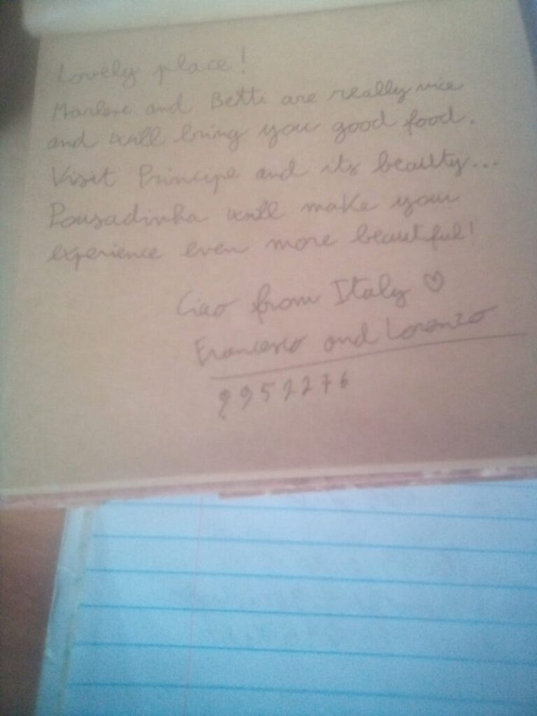 Com uma incrível vista da Ilha do Príncipe, do mar e do parque biológico da humanidade, reserva da biosfera, a Pousadinha Mar Ave Ilha tem disponíveis 6 Quartos, todos com casa de banho privativa, varandas e terraços; a Casa-Mãe com 1 sala, 2 quartos e 2 varandas; mais 1 fantástica Mezzanine com salão, AC, TV, casa de banho, além dos espaços comuns do jardim, salão, restaurante e bar.